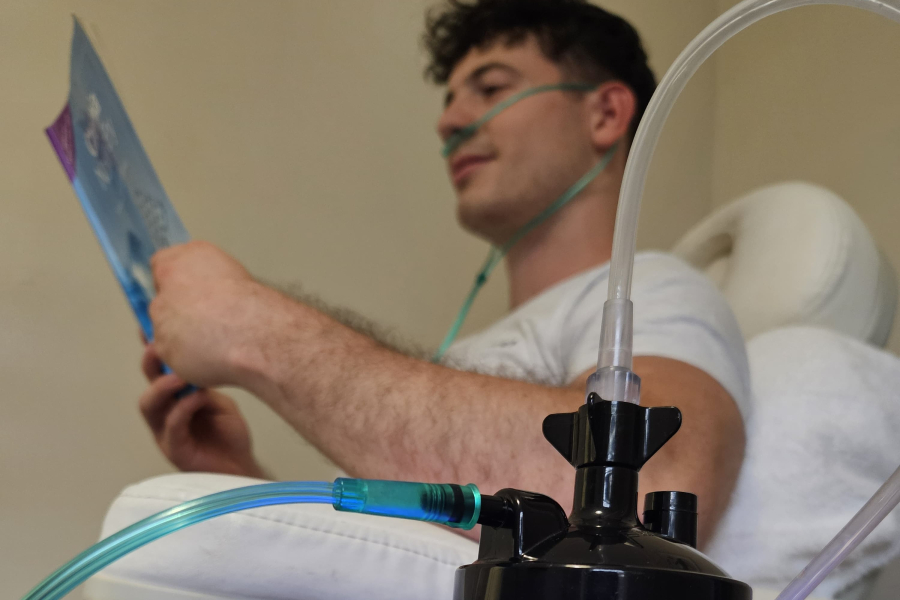 Procedurę inhalacji przeprowadza się poprzez wdychanie gazowego wodoru (H2) przez kaniulę nosową lub maskę podłączoną do generatora wodoru.
